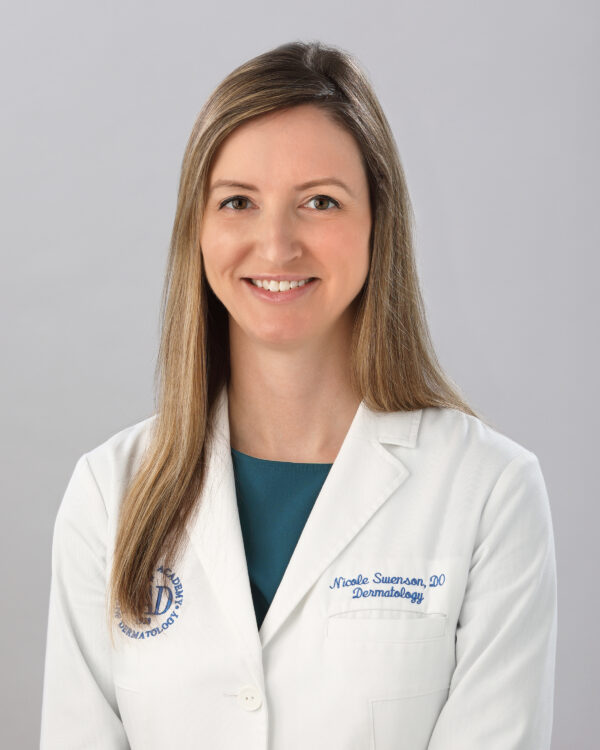 We are excited to welcome Dr Nicole Swenson, to MacInnis Dermatology, in July 2022. Nicole Swenson, D.O. is a Board-certified physician who specializes in cosmetic and general dermatology for men and women. In her four years of experience, she has become passionate about providing excellent care to her patients. Dr Swenson graduated from Augustana University in Sioux Falls, SD, she went on to earn her medical degree from Kansas City University of Medicine and Biosciences. Following medical school, she completed a residency in West Palm Beach, FL, earning her board certification in Internal Medicine. Dr. Swenson completed a two-year research fellowship serving as a sub-investigator for numerous clinical trials. She then went on to complete a residency in Dermatology with the KCU-GME/ADCS Dermatology Residency of Orlando. Dr. Swenson earned board certification for Dermatology in 2018 and is now a Diplomate of the American Board of Dermatology. Dr Swenson is not only a physician, but also a published author, as she has co-authored several articles in peer-reviewed dermatology journals and cosmetic dermatology textbooks. In her extra time, she to enjoys a yoga class, and is enjoying learning the game of golf. As a native of Iowa, Dr. Swenson now considers Florida home.
